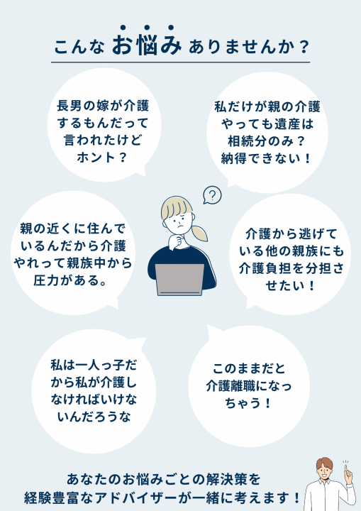 介護の押し付けトラブルでお困りの際は是非ご相談ください。