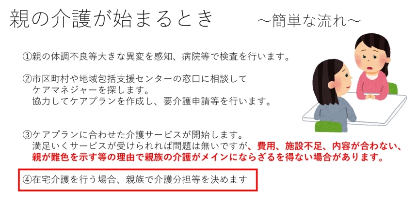 特に「在宅介護」の話合いをする場合は注意が必要です。